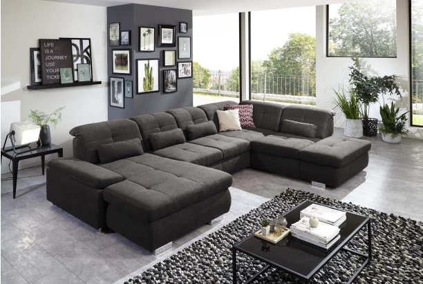 Vychutnejte si společné chvíle se svými blízkými v pohodlí. Sedací souprava Alvaro ve tvaru U nabízí dostatek místa pro všechny. Očalouněna látkou v barvě antracitová. Komfort zajistí funkce nastavení hloubky sedu. Sedačka Alvaro se tak stane nejen krásnou, ale také praktickou dominantou vašeho obývacího pokoje. Varianta sedačky bez polohování opěrky rukou a hlavy, bez funkce rozkladu a bez úložného prostoru.