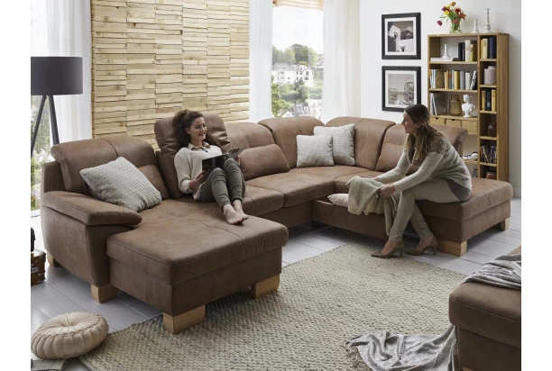 Sedací souprava Garland ve tvaru U snadno splní vaše očekávání na komfort během každodenního sezení nebo odpočinku. Prostorné sezení doplňují kvalitně vypolstrovaná vysoká opěradla s polohováním horních opěrek. Tato prostorná sedačka je očalouněna zajímavou látkou v odstínu hnědý tabák, která má jemně strukturovaný povrch a připomíná tak optiku kůže. U sedačky oceníte i nožky z masivního dřeva. Tato varianta sedačky je navíc vybavena funkcemi s nastavením hloubky sedu, polohováním područky, funkcí rozkladu pro příležitostné spaní a dokonce třemi úložnými prostory.