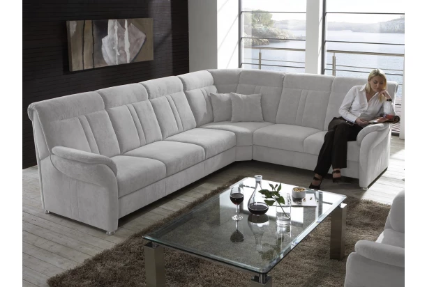 Rohová sedací souprava Malaga, světle šedá látka, bez funkcí
