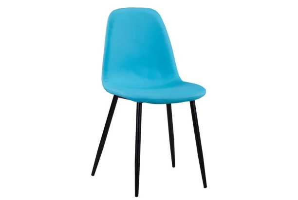 Moderní jídelní židle v příjemně zaobleném tvaru skvěle drží tělo při sezení. Potažena ekokůží v modrém odstínu.