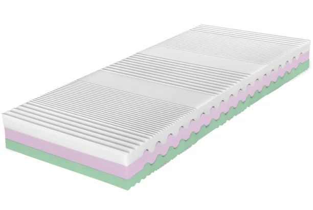 Ortopedická sendvičová matrace s anatomickými zónami, super prodyšnou konstrukcí bez lepidel s rozdílnou tuhostí stran a pratelným potahem s kašmírovými vlákny. Matrace je vhodná také pro alergiky.