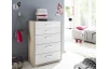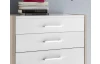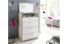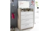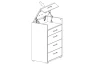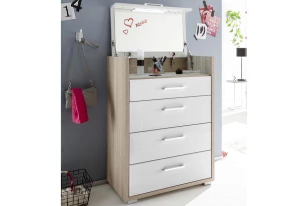 Praktická zásuvková komoda slouží i jako kosmetický stolek. Horní výklopné dveře ukrývají vnitřní úložný prostor, zrcadlo a intergrované LED osvětlení.