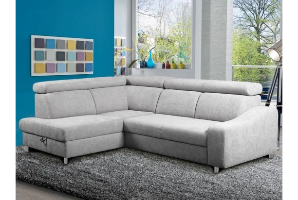Moderní rohová sedací souprava elegantních tvarů nabídne komfort bez kompromisu i v menším obývacím pokoji. Nastavitelné zádové opěrky, úložný prostor i funkce rozkladu vám zpříjemní každodenní pohodu. Potažena příjemnou měkkou látkou ve světle šedém odstínu. Varianta s otomanem vlevo.