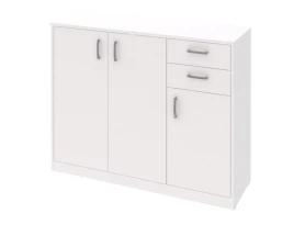 Úzká skříň se zásuvkami z programu Mega v bílém dekoru – variabilní program nábytku Mega je zcela univerzální a vhodný pro zařízení každé místnosti. Kombinujte mezi sebou jednotlivé díly a vytvořte si tak doma prostředí podle své vlastní fantazie, potřeb a prostorových možností.