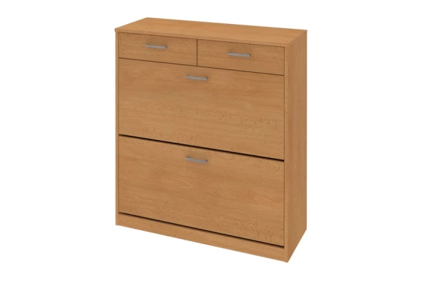 Středně vysoký botník z programu Mega v dekoru buk – variabilní program nábytku Mega je zcela univerzální a vhodný pro zařízení každé místnosti. Kombinujte mezi sebou jednotlivé díly a vytvořte si tak doma prostředí podle své vlastní fantazie, potřeb a prostorových možností.