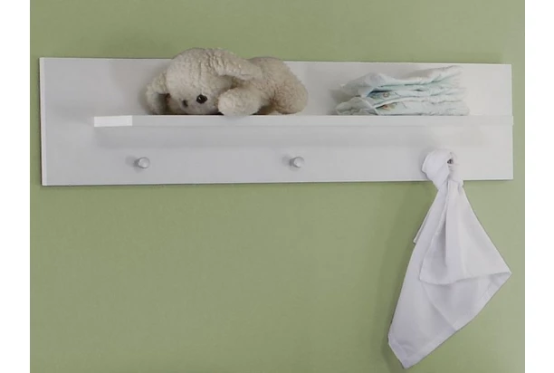 Police na zeď z kolekce Olivia v univerzálním bílém provedení pro zařízení jakéhokoliv pokoje. Obsahuje navíc tři praktické háčky.