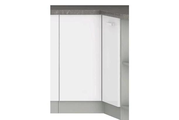 Dolní rohová kuchyňská skříňka z programu Bianka v jednoduchém, funkčním a zároveň moderním stylu. Přední plochy v bílém vysokém lesku. Různé elementy kuchyňského programu Bianka můžete mezi sebou libovolně kombinovat a sestavit si tak libovolně velkou kuchyni podle vašich individuálních potřeb a prostorových možností.