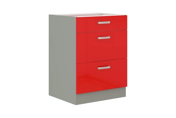 Dolní kuchyňská zásuvková skříňka Rose 60D3S, 60 cm, červený lesk