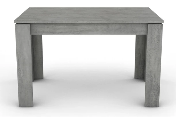 Trendovní jídelní stůl o rozměru 120×80 cm v imitaci šedý beton má kvalitní pevnou konstrukci se širokými rohovými nohami.