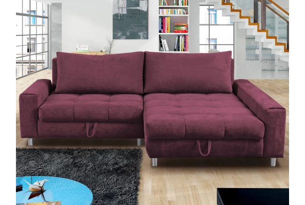 Rohová sedací souprava Kevin je ideální také do malého prostoru. I přes svou velikost nabízí kvalitní komfort, velký otoman pro pohodovou relaxaci, úložný prostor i praktickou funkci rozkladu na velmi prostorné lůžko pro dvě dospělé osoby, které lze využít také pro trvalé spaní. Očalouněna měkkou strukturovanou látkou v barvě fialová lila. Sedačka tvoří pravý roh.