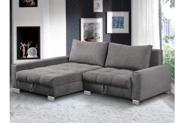 - funkce rozkladu na plnohodnotné lůžko: rozklad sedáku + otomanu = extra velká plocha 193×220 cm (výsuvný/sklápěcí typ rozkladu – lůžko snadno vznikne po vysunutí sedáku vpřed a sklopení opěráku, konstrukce kov/dřevo, látkové madlo, plocha lůžka potažena látkou, lze využít také pro trvalé spaní)