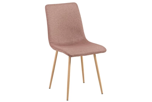 Zaoblená a pohodlně tvarovaná jídelní židle má stabilní kovové nohy v imitaci světlého dřeva. Očalouněna hnědou tkaninou.