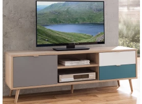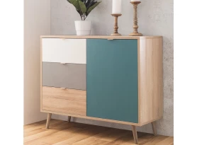 Široká komoda Cuba, dub/bílá/šedá/petrolejová