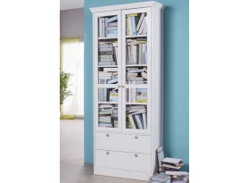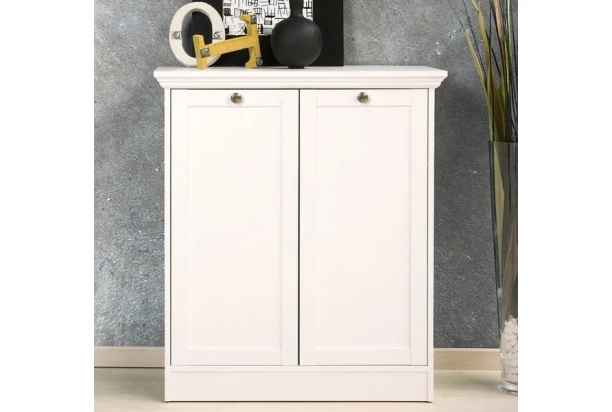 Skříňka s otočnými dveřmi z programu Landwood – tradičně bílý nábytek s okrasnou římsou v romantickém venkovském stylu. Vytvářejte si tak snadno půvabné interiery s nádechem tradice a kouzlem atmosféry venkova.