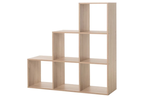 Regál se 6 přihrádkami v dekoru dub sonoma má kaskádovitou konstrukci, kterou lze umístit libovolně podélně ke stěně anebo kolmo. Přihrádky lze navíc libovolně doplnit úložnými boxy.