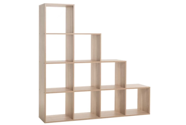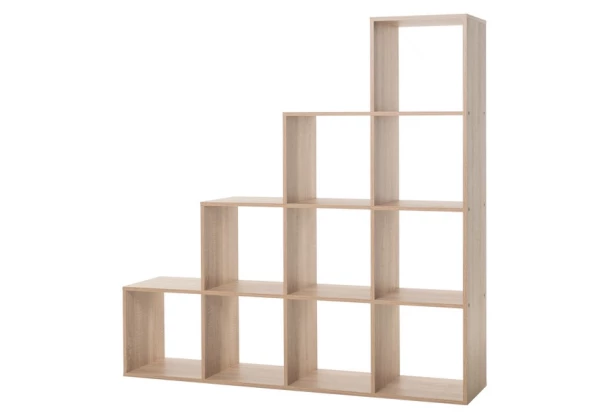 Regál s 10 přihrádkami v dekoru dub sonoma má kaskádovitou konstrukci, kterou lze umístit libovolně podélně ke stěně anebo kolmo. Přihrádky lze navíc libovolně doplnit úložnými boxy.
