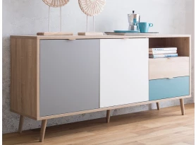 Vysoká skříňka Cuba, dub/bílá/šedá/petrolejová