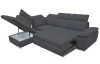 Elegantní rohová sedací souprava s komfortně měkkým sezením a polohovatelnými opěrkami hlavy nabízí skvělé pohodlí i praktičnost. Varianta s otomanem vlevo. Očalouněna tkaninou v tmavém antracitově šedém odstínu.