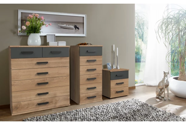 Skříňka se zásuvkami/noční stolek Cork, prkenný dub/grafit