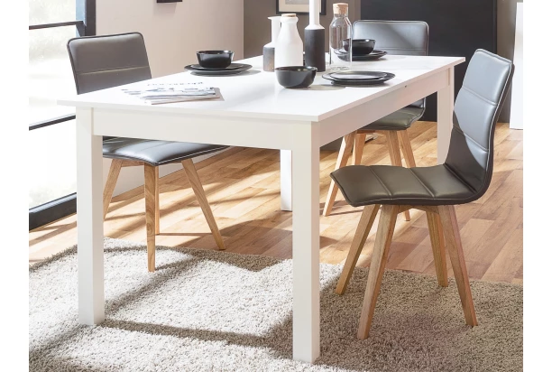 Obdélný jídelní stůl v bílé barvě a o ploše 137×80 cm je vybaven rozkládací funkcí, díky které získá šířku 177 cm. Univerzálním stylem se hodí do moderního i klasického domova.