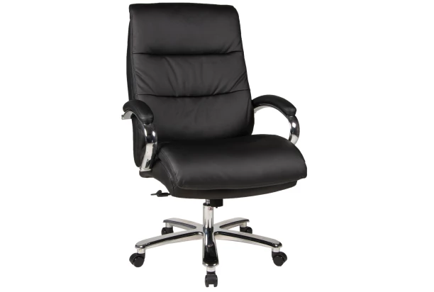 Kancelářské křeslo s nosností až do 180 kg je proporčně ideální pro velké osoby. Stabilní kovovou konstrukci doplňuje kvalitní pružinová výplň sedáku, anatomický tvar opěradla a komfortně zaoblené prodručky. Očalouněno černou ekokůží pro snadnou údržbu.