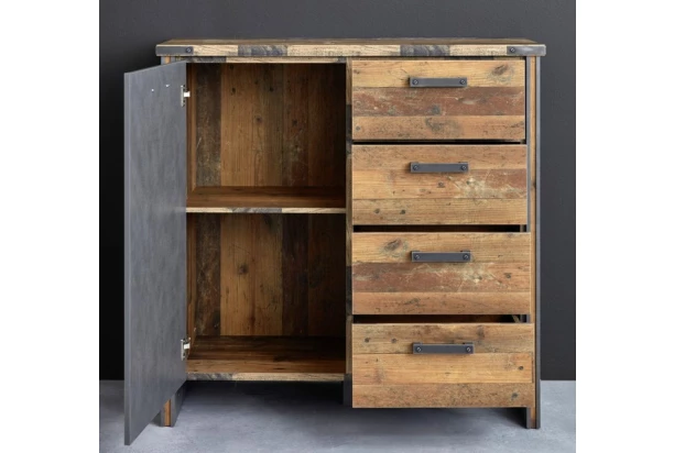 Komoda se zásuvkami z kolekce Prime v industriálním stylu upoutá pozornost již na pohled skvělou vintage optikou dřevěných latí a obroušeného kovu. Nábytek tak dokonale podtrhne osobitost vašeho interieru.