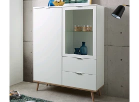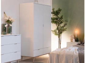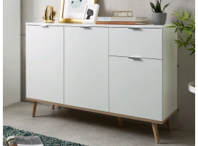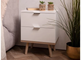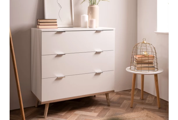 Komoda se 3 zásuvkami z kolekce Göteborg v oblíbeném skandinávském stylu – čisté bílé linie nábytku podtrhují masivní dřevěné nožky s útulným dubovým dřevodekorem, díky kterým působí nábytek vzdušně a zároveň velmi elegantně.