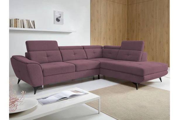 Rohová sedací souprava Sergio – spojení moderního vzdušného designu, příjemného pohodlí a praktických vlastností, které potěší každý den. Polohovatelné opěrky, úložný prostor pod otomanem i rozkládací funkci na lůžko oceníte. Očalouněna látkou v odstínu tmavě růžová se zvýšenou odolností proti vlhkosti. Sedačka s bočním otomanem vytváří pravý roh.