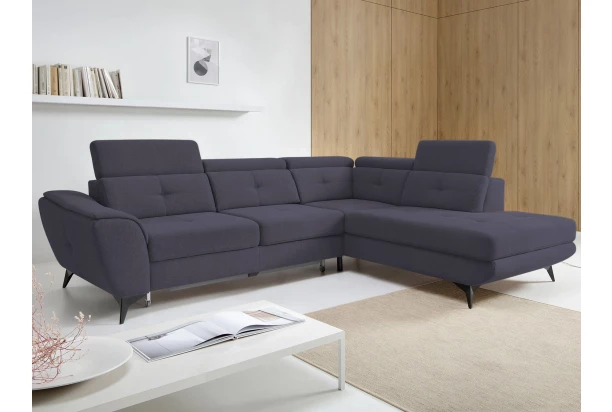 Rohová sedací souprava Sergio – spojení moderního vzdušného designu, příjemného pohodlí a praktických vlastností, které potěší každý den. Polohovatelné opěrky, úložný prostor pod otomanem i rozkládací funkci na lůžko oceníte. Očalouněna látkou v odstínu tmavě modrá se zvýšenou odolností proti vlhkosti. Sedačka s bočním otomanem vytváří pravý roh.