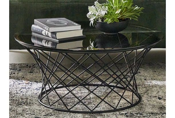 Kulatý konferenční stolek se díky nadčasovému designu hodí do jakéhokoliv moderního interieru. Propletený skelet z černého kovu a plocha z kouřově šedého skla společně působí velmi lehce a vzdušně. Díky 80 cm průměru lze stolek snadno umístit i do menšího prostoru obýváku a navíc černo-šedá barevná kombinace se snadno kombinuje k ostatním druhům nábytku.