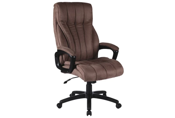Kvalitní kancelářské křeslo s vysokou nosností a anatomicky vypolstrovaným sedákem je skvělou oporou při práci. Očalouněno hnědou látkou v optice kůže. Pomocí páček si snadno nastavíte výšku sedu anebo sklon opěráku.