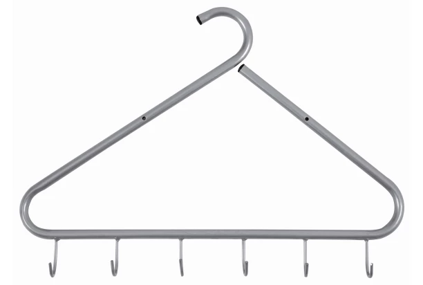 Nástěnný věšák Arianne ve vtipném designu ramínka na šaty je vyroben z šedého lakovaného kovu a nabízí celkem 6 háčků.