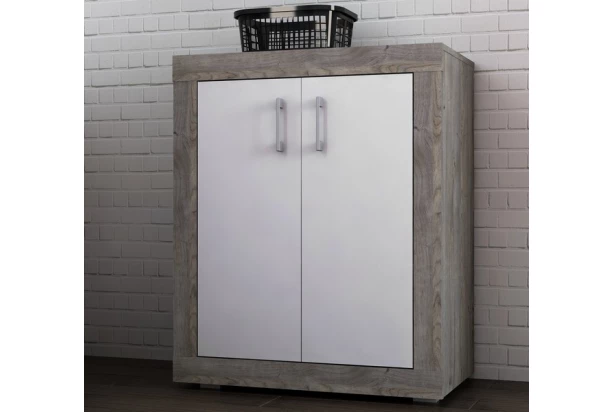 Úzká komoda v kombinaci dřevodekoru dub ribbeck a bílé barvy snadno pasuje do mnoha interierů. Obsahuje 2 dveře a díky šířce 74 cm najde své místo v každém koutě bytu.