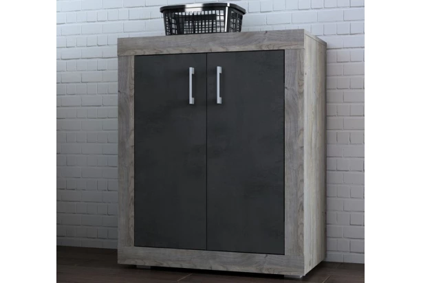 Úzká komoda v kombinaci dřevodekoru dub ribbeck a imitace tmavého betonu snadno pasuje do mnoha interierů. Obsahuje 2 dveře a díky šířce 74 cm najde své místo v každém koutě bytu.