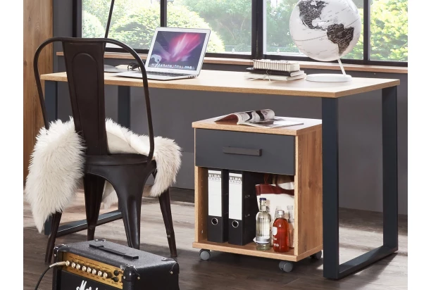Psací stůl moderní nábytek v duchu městského industriálního stylu si oblíbí nejen mladí lidé. Útulný dubový dřevodekor doplňuje stabilní kovová podnož v černém provedení.