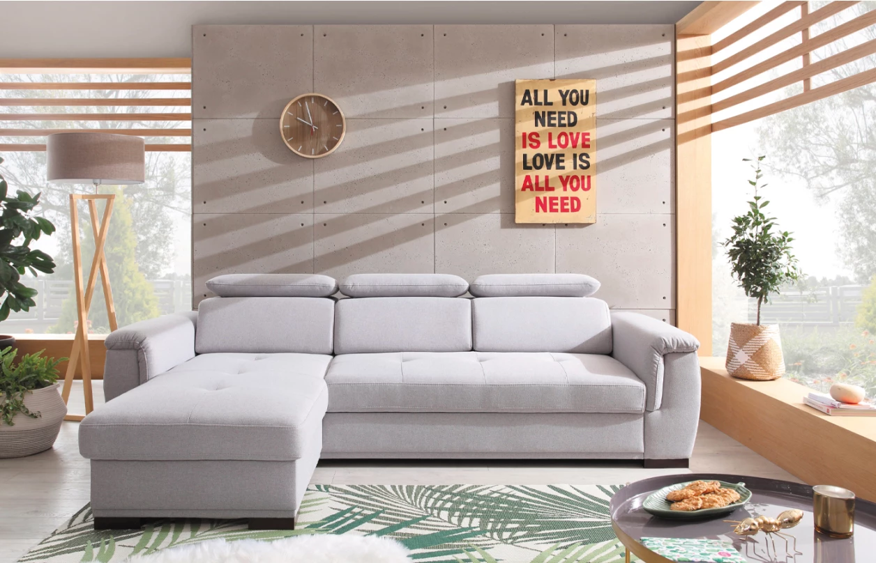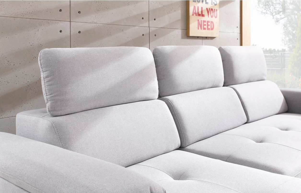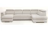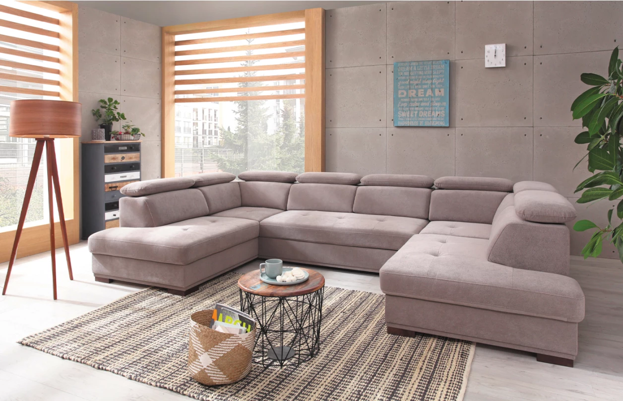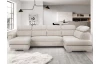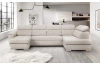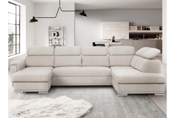 Trendová sedací souprava ve tvaru pravé U si Vás získá prostorností, příjemně měkkým komfortem i kvalitním zpracováním. Tato pohodlně polstrovaná sedačka nabízí polohovatelné zádové opěrky pro každodenní pohodu a boční otomany pro chvíle relaxace. U sedačky využijete dva úložné prostory a funkci rozkladu na lůžko, které může být využito i pro trvalé spaní. Sedačka je očalouněna jemně strukturovanou látkou v barvě krémová. Potahová látka je příjemně měkká a zároveň odolná – vyznačuje se zvýšenou voděodolností.