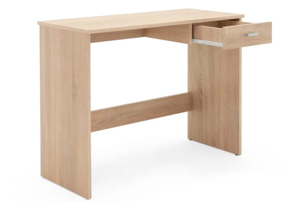 Malý psací stůl v dekoru dub sonoma o celkové šířce 89 cm najde své místo v každé místnosti. Obsahuje jednu úložnou zásuvku a poslouží pro klasické psaní, práci na notebooku anebo i jako třeba kosmetický stolek. Jednoduše praktický a stabilní.