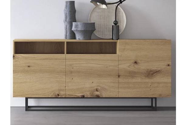Široká úložná komoda v dekoru dub artisan z programu Enjoy – inspirujte se městským industriálním stylem a buďte prostě in. Nábytek na černé podnoži zaujme nevšední optikou a zároveň působí velmi vzdušně.