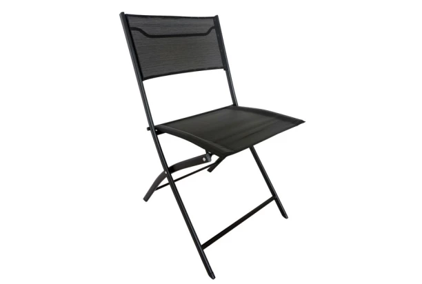 Kompaktní zahradní židle má praktickou skládací konstrukci z černého kovu a umělé tkaniny. Svými rozměry snadno najde místo i na menším balkonu nebo dvorku.