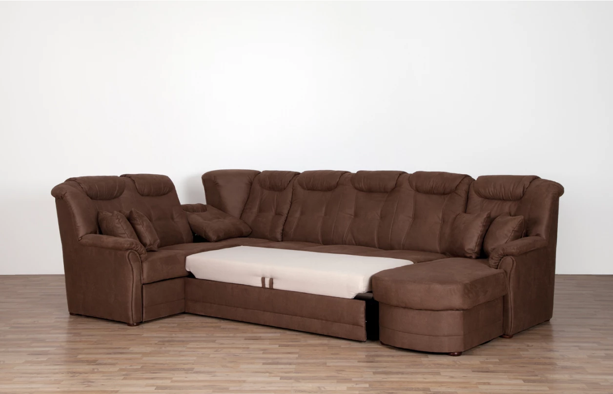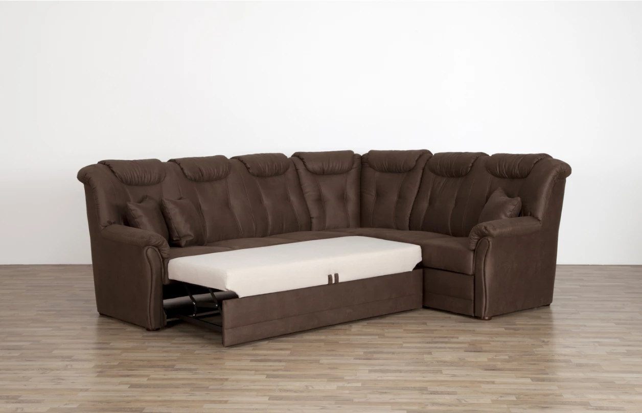 - potah: látka 612 – mikrovlákno v optice kůže (příjemně měkký a hladký povrch), barva hnědá (složení: 70% polyester/30% bavlna)