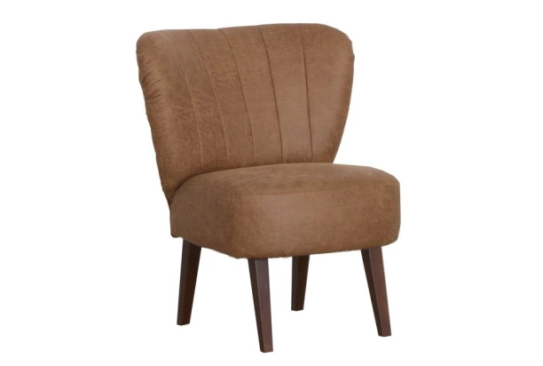 Malé a zároveň velmi stylové – křeslo na dřevěných nožkách najde své místo téměř v každé místnosti. Pohodlně zaoblený sedák očalouněn světle hnědou látkou v optice broušené kůže. Křesílko tak prakticky poslouží například v prostoru obýváku, ložnice nebo také v předsíni.