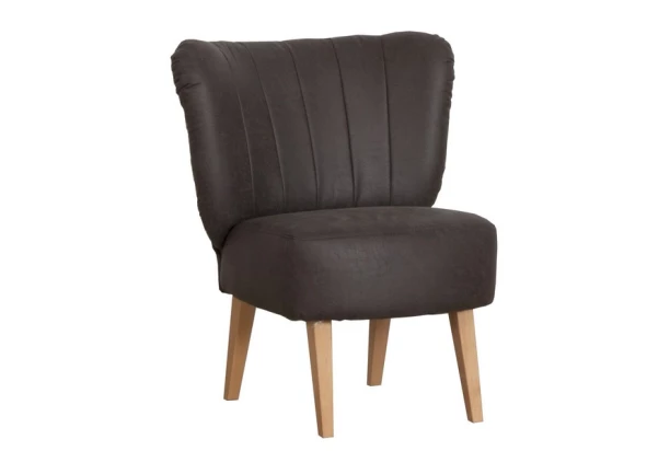 Malé a zároveň velmi stylové – křeslo na dřevěných nožkách najde své místo téměř v každé místnosti. Pohodlně zaoblený sedák očalouněn tmavě hnědou látkou v optice broušené kůže. Křesílko tak prakticky poslouží například v prostoru obýváku, ložnice nebo také v předsíni.