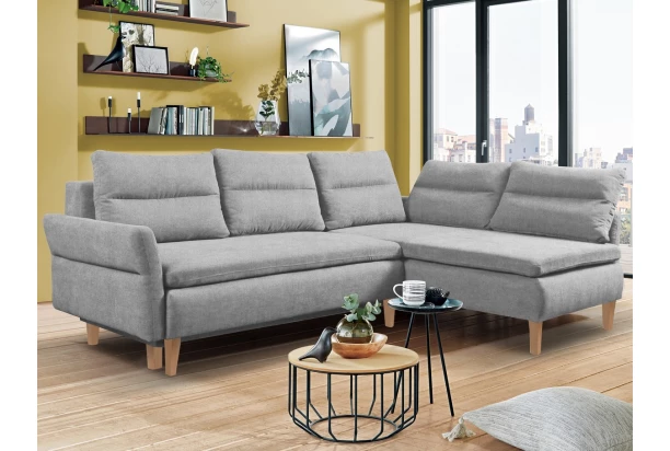 Rohová sedací souprava v trendovém stylu zaujme prošitím polštářů a bočních područek. Očalouněna příjemně měkkou látkou v odstínu světle šedá. Velikostně ideální sedačka do jakéhokoliv rohu obývacího pokoje, otoman můžete umístit libovolně na pravou nebo levou stranu. Navíc s funkcí rozkladu i úložným prostorem.