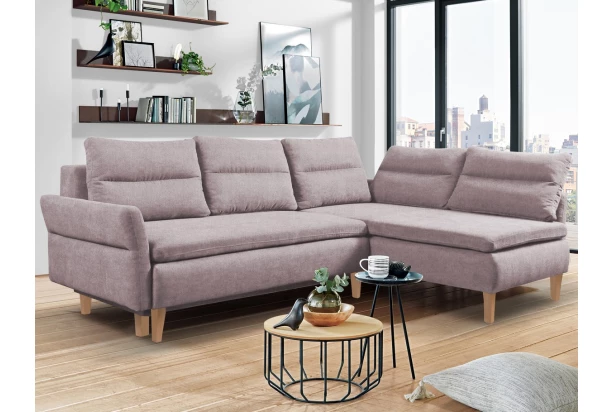 Rohová sedací souprava v trendovém stylu zaujme prošitím polštářů a bočních područek. Očalouněna příjemně měkkou látkou v odstínu růžová. Velikostně ideální sedačka do jakéhokoliv rohu obývacího pokoje, otoman můžete umístit libovolně na pravou nebo levou stranu. Navíc s funkcí rozkladu i úložným prostorem.