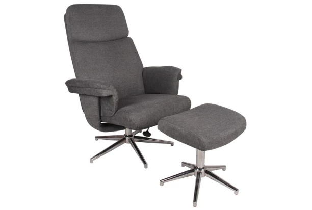 Moderní relaxační křeslo s podnožkou má komfortně měkký sedák a vysoký opěrák pro oporu hlavy. Díky nastavitelnému sklonu opěradla si můžete užívat pohodlí během čtení, sledování televize nebo odpočinku. Očalouněno tkaninou v antracitové šedé barvě.