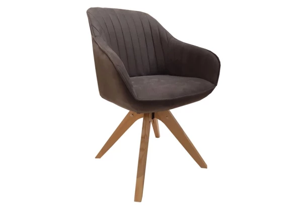 Stylová jídelní židle s otočným sedákem a komfortně tvarovaným opěradlem vytvoří útulnou atmosféru v jídelně. Masivní dřevěné nohy doplňuje příjemně měkká látka v šedé vintage optice kůže.