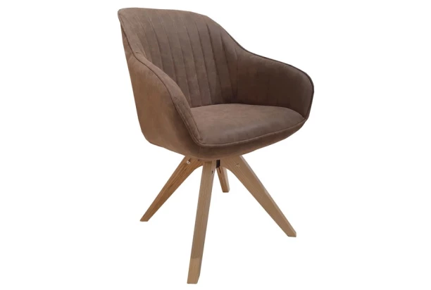 Stylová jídelní židle s otočným sedákem a komfortně tvarovaným opěradlem vytvoří útulnou atmosféru v jídelně. Masivní dřevěné nohy doplňuje příjemně měkká ekokůže ve vintage optice hnědé kůže.