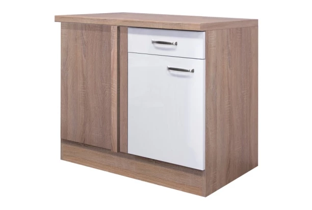 Dolní rohová kuchyňská skříňka Valero, dub sonoma/bílý lesk, 110 cm