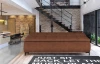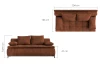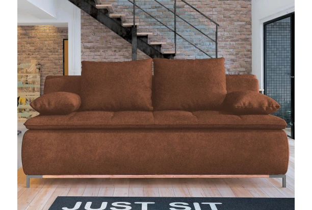 Komfortně vypolstrovaná pohovka s velkými polštáři je vybavena rozkládací funkcí na lůžko, které můžete využít i pro trvalé spaní. Očalouněna příjemně měkkou látkou v odstínu rezavá, doplněna proševem a kovovými nohami.