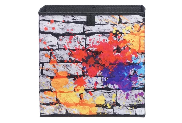 Úložný látkový box s barevným motivem graffiti poslouží jako praktická součást regálu anebo vnitřního vybavení skříněk, případně ho můžete umístit samostatně. Jeho konstrukci lze kdykoliv snadno složit a uschovat.